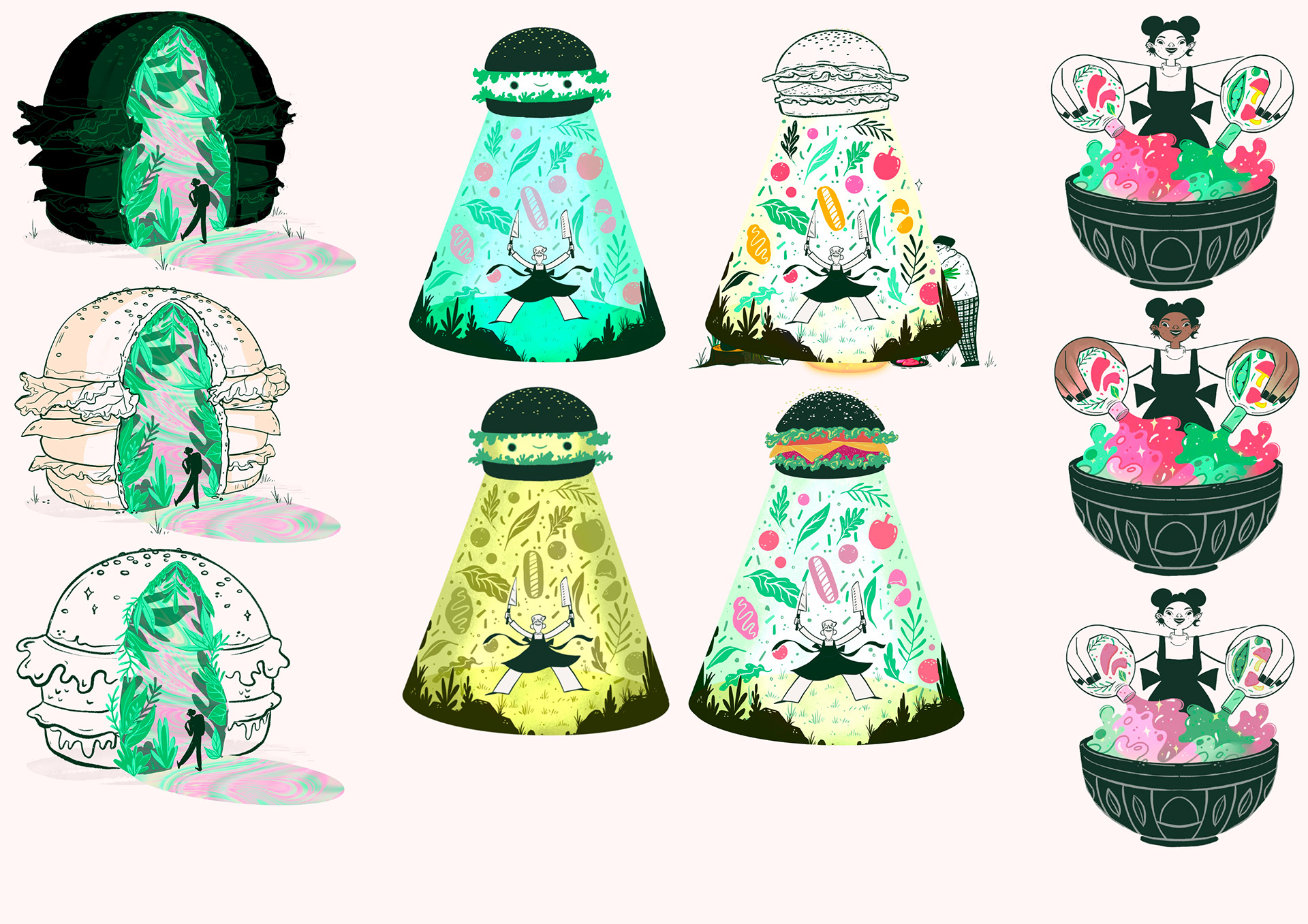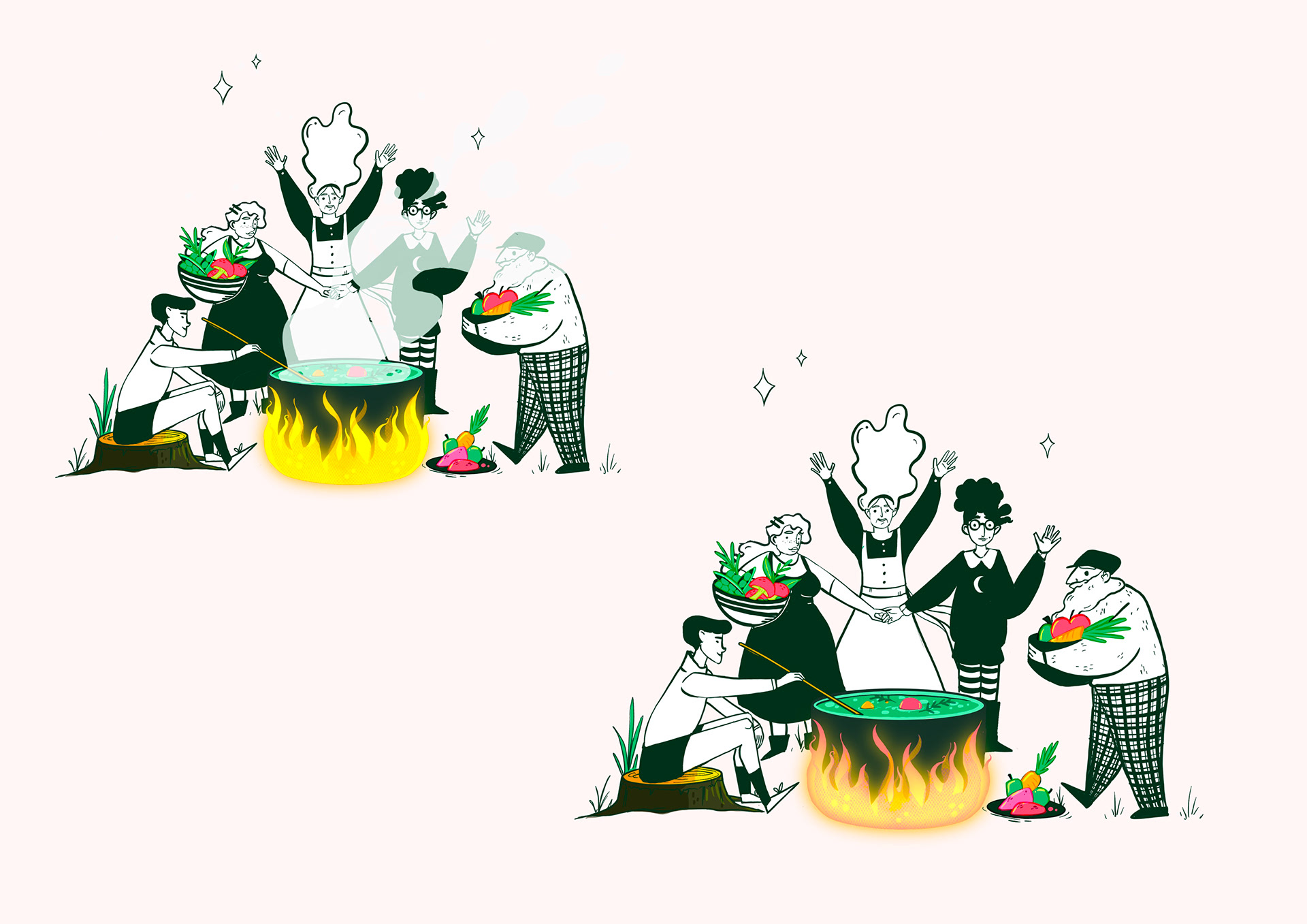 A branding brief set by Fiasco Design as part of the InkyGoodness '28 Day Branding Challenge', to create 4x spot illustrations for a vegan food brand. The copy was provided by Fiasco Design.