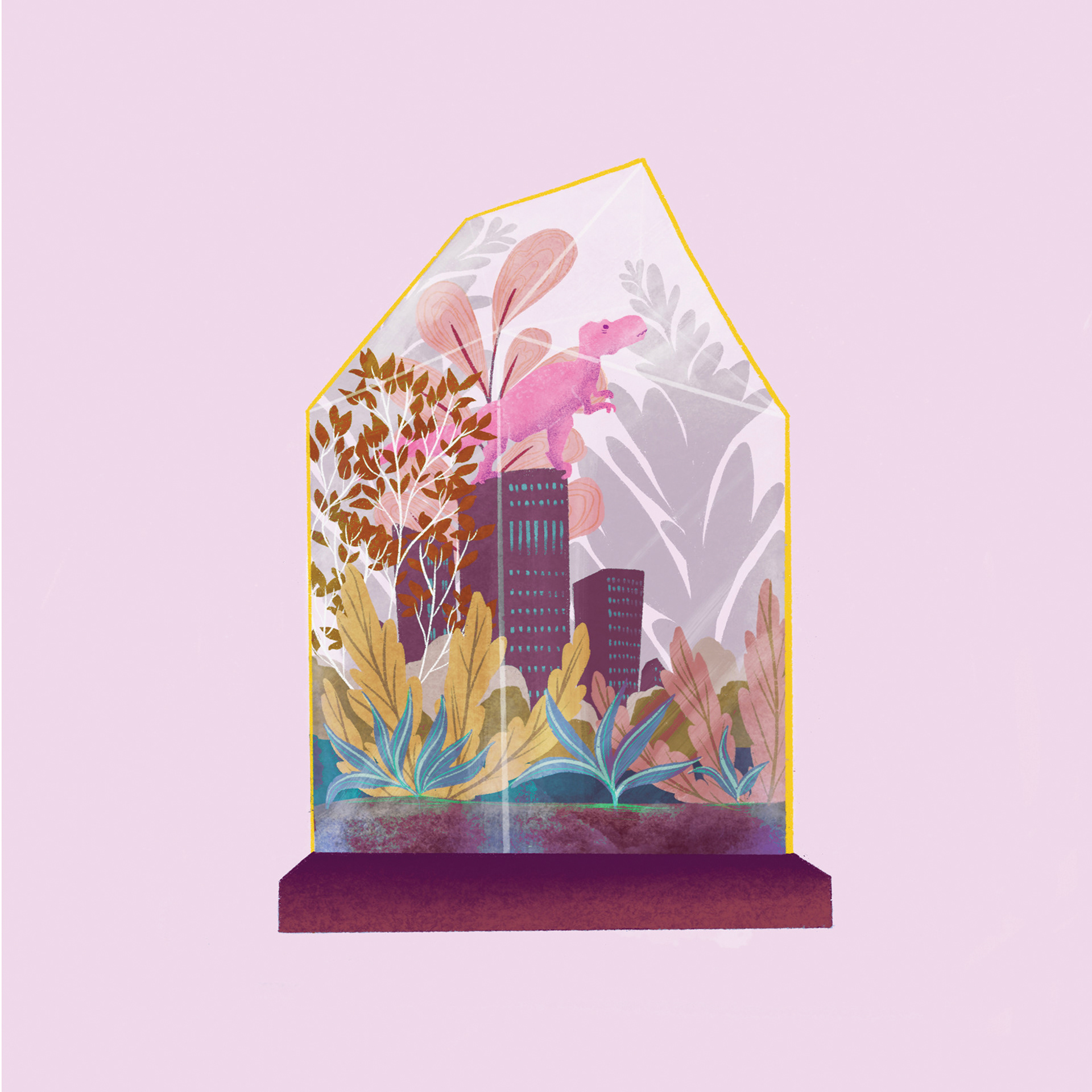Personal project, to create a collection of dinosaur illustrations for print and product. These were printed onto coasters, cards and prints. nothing deep or meaningful, just fun tiny dinos in vessels.